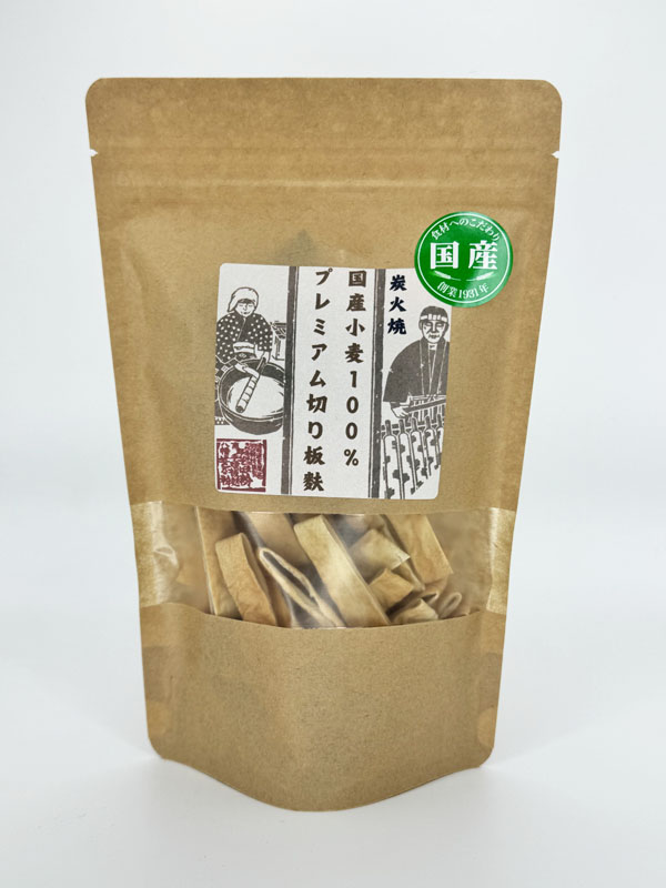 【炭火焼切り板麩プレミアム】(50g/20g入り)でございます。